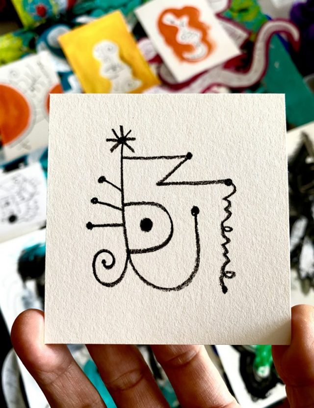 【一日一作プロジェクト】ペンシルで描いて「うにーる星」を作った。本棚&画材棚の中身が「床」に散らばって収拾がつかず、朝から意を決して大整理に取りかかる。