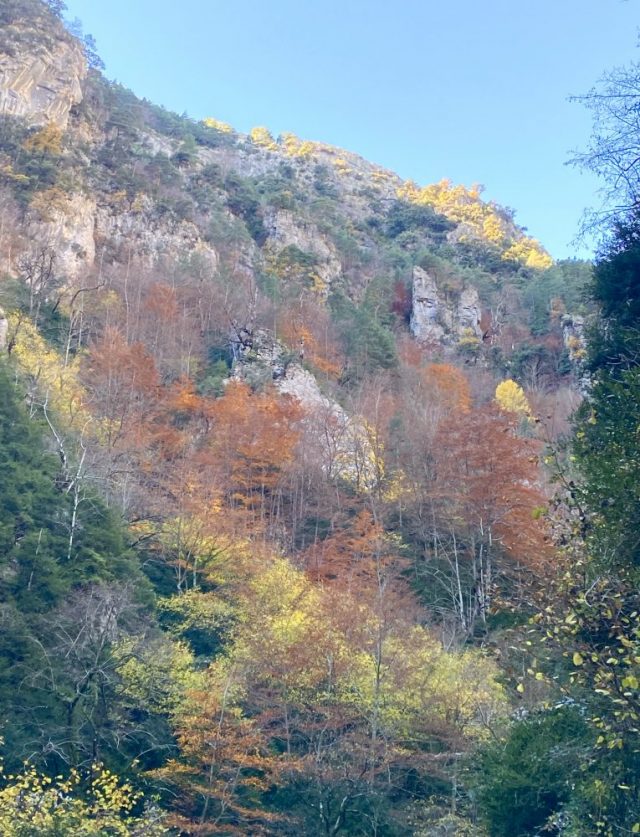 とにかく手つかずなのに驚いた。まったくほったらかし。道はあるけど、それだけ。渓谷の水音に耳を澄ませ、紅葉や静寂を楽しむ。すれ違う車もなく、今ここにいる人間って、私たちぐらい?