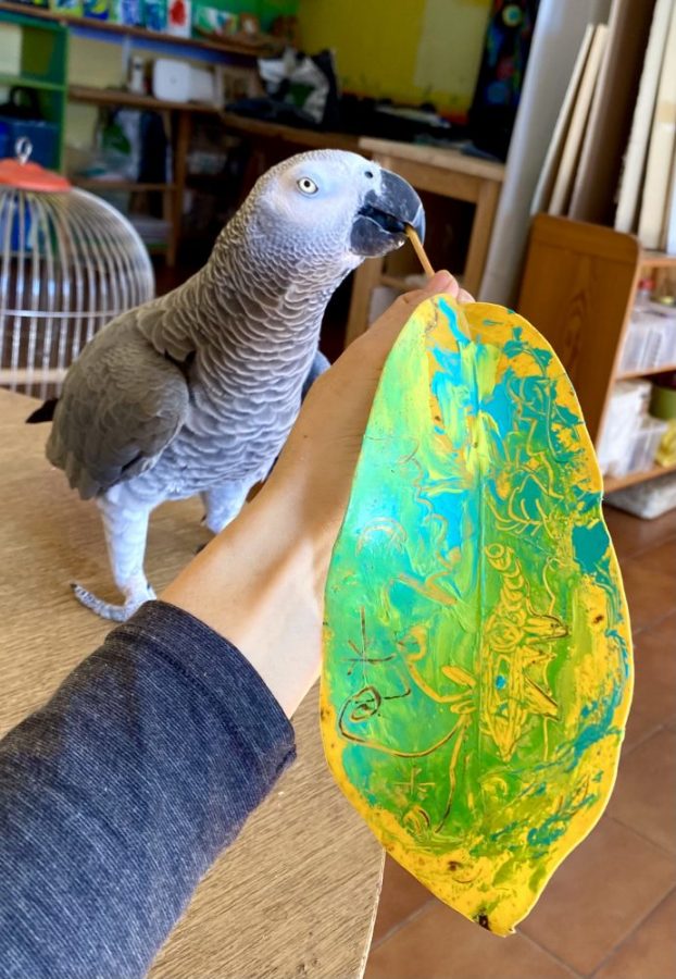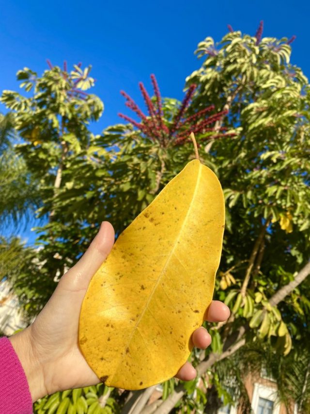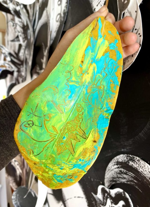 【一日一作プロジェクト】落ち葉にペイントして「月見獣(つきみじゅう)」を作った。今日は朝から急用で駆けずり回り、今もうすでに夜の11時半。