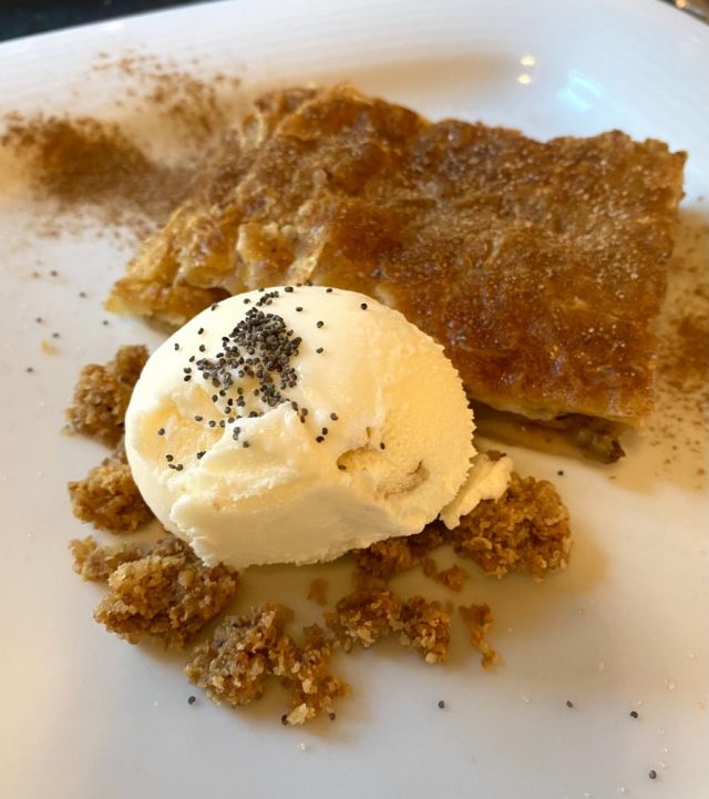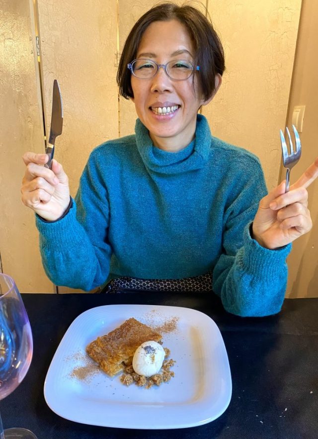 差がありすぎやろ〜。デザートは「りんごパイ&アイス」「栗のプリン&アイス」。全て半分こ。めちゃ贅沢気分。お腹も心もぽかぽか。エネルギーチャージ完了。