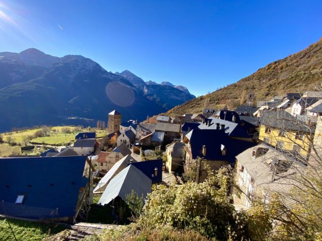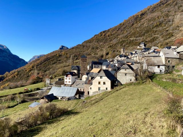 山の斜面にへばりつくようにたたずむ集落「ヒスタイン村」。なんて美しいたたずまい(写真)。標高1946m。来週あたり、この辺りには雪がちらつくのかも。除雪車も入れないこのチスタウの谷は