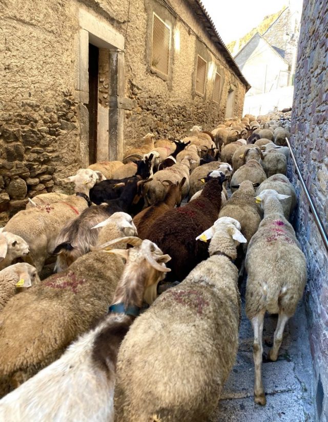 何十頭という羊とヤギが、ものすごい勢いでなだれ込んで来た。