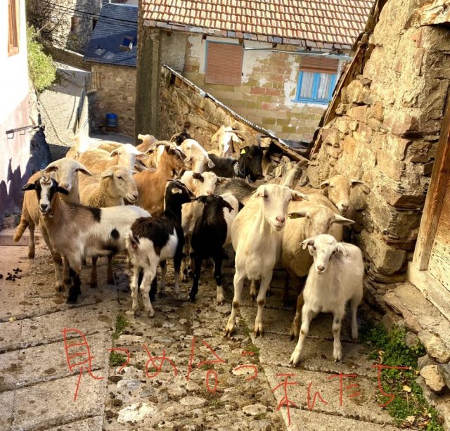 「猫と羊とヤギ。羊飼いのおばさま。そして薪を割るおじさま」