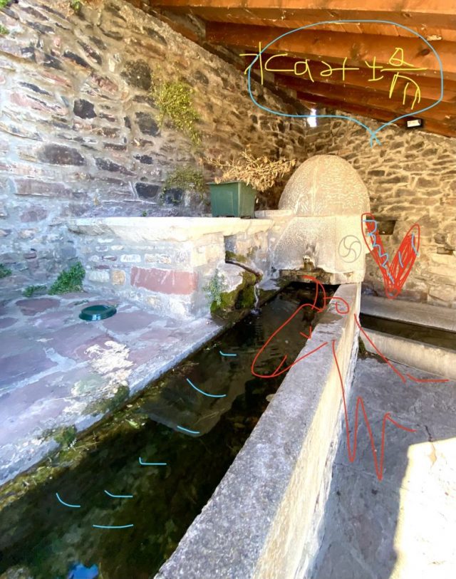 今日の羊飼いは、70歳くらいのおばさま。この村で、ずっとこうして生活してきたのかしら。何だかしみじみ。そういえば、村の入口には「動物たちの水飲み場」があった(写真)。