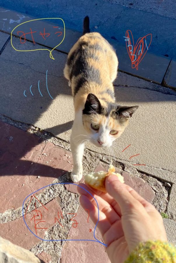 「みゃう〜」「あれぇ、お腹空いてるのかなぁ」