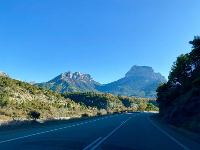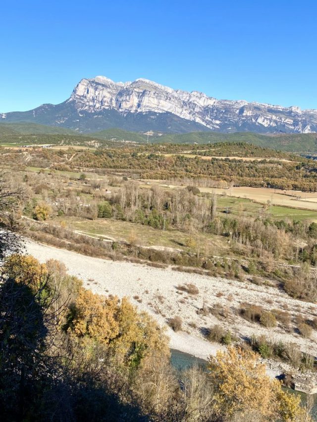 眼下には川が流れ、その向こうには山々が。ウエスカ県は、本当にどこを見ても
