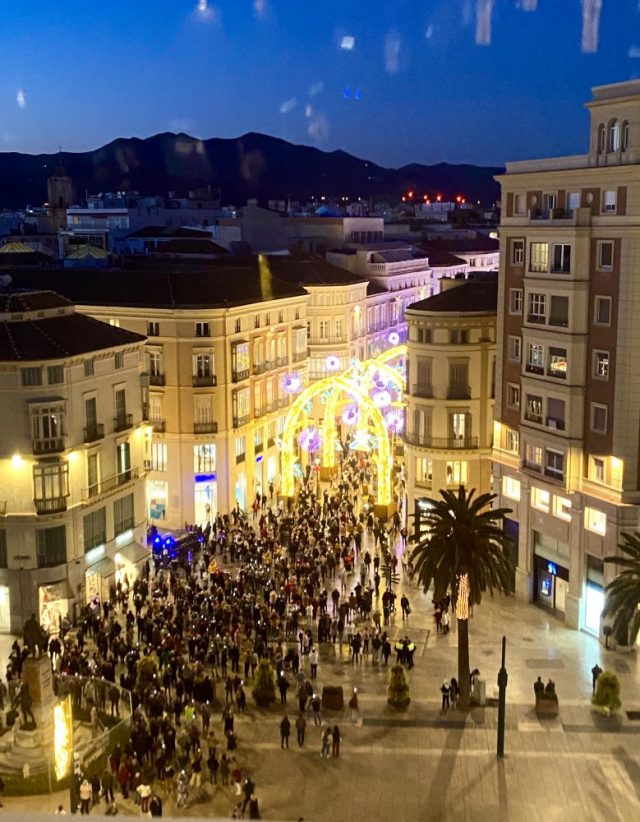 さて。そんな中、マラガのセントロではクリスマスイルミネーションが大盛況。明るすぎや〜(笑)分けてくれ〜。この写真、向かいのビルのカフェテリアから先日撮ったもの。