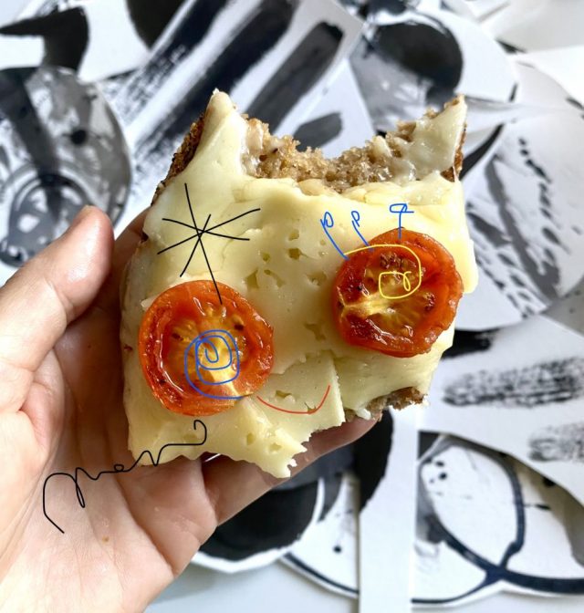 【一日一作プロジェクト】朝食のパンで「あらら猫」を作った。ってか、かじったら生まれた(笑)あらら〜。実は昨日のイブから今日にかけて、うちの地区では