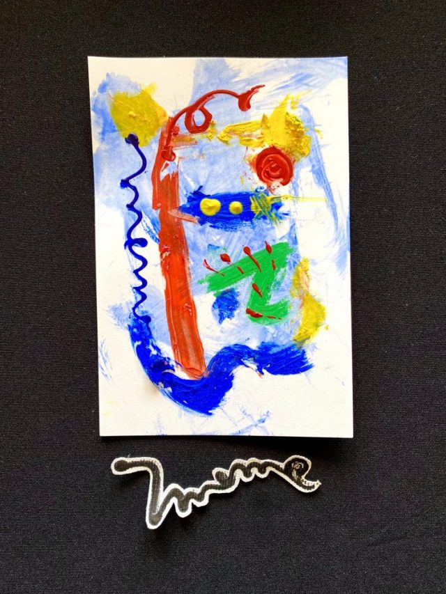 スペイン語で「幸せ」の意。「Feliz」の文字が、のびのびと踊る。太陽(赤)、光(黄)、水(青)、大地(緑)が、ひとつになって戯れる。
