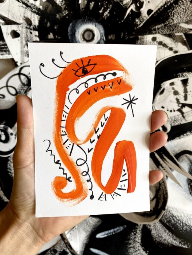 【一日一作プロジェクト】ペンシル&絵の具で「回獣(かいじゅう)」を作った。いよいよダンス教室が再開。久しぶりに踊ったら、汗がどば〜っ。