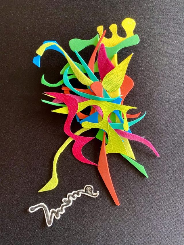 何でもアートに大変身!企画(笑)。細くて小さい細切れパーツばかりで、制約はあるけれど。条件があるって燃えるよね〜。
