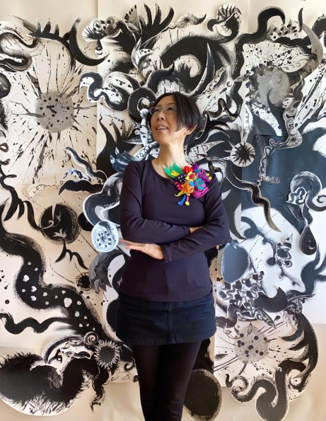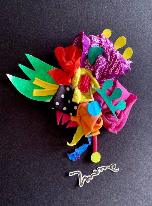 【一日一作プロジェクト】ブローチアート「命守花(いもりばな)」を作った。先日、いつものように朝のストレッチをしていたら、左の鎖骨の下(左胸の上部)に