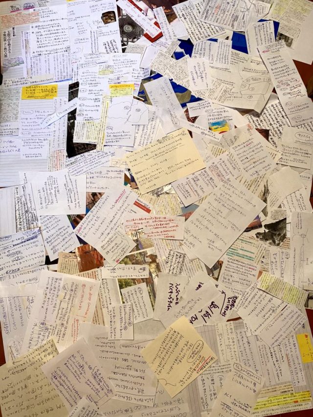 出てきた(笑)。これはほんの1部。まだダンボールに2箱分ある。なんせ20年分も「書きたいこと」をメモし続けたので、仕分けも大変。まずは思い切って半分処分。久しぶりに目を通し