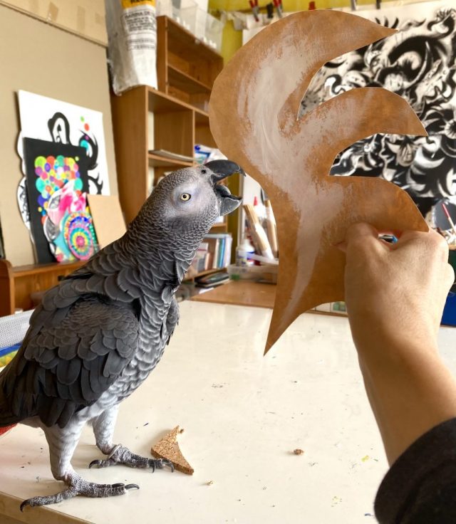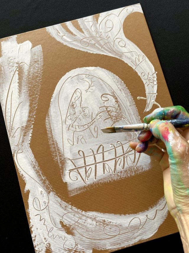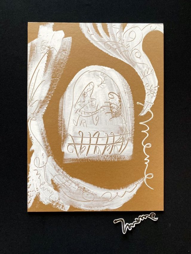【一日一作プロジェクト】「風音窓(かざねまど)」を作った。実はこれ、バインダーの表紙。しっかりした厚紙カートンに心を奪われ、捨てる前にカットしてキャンバスに。