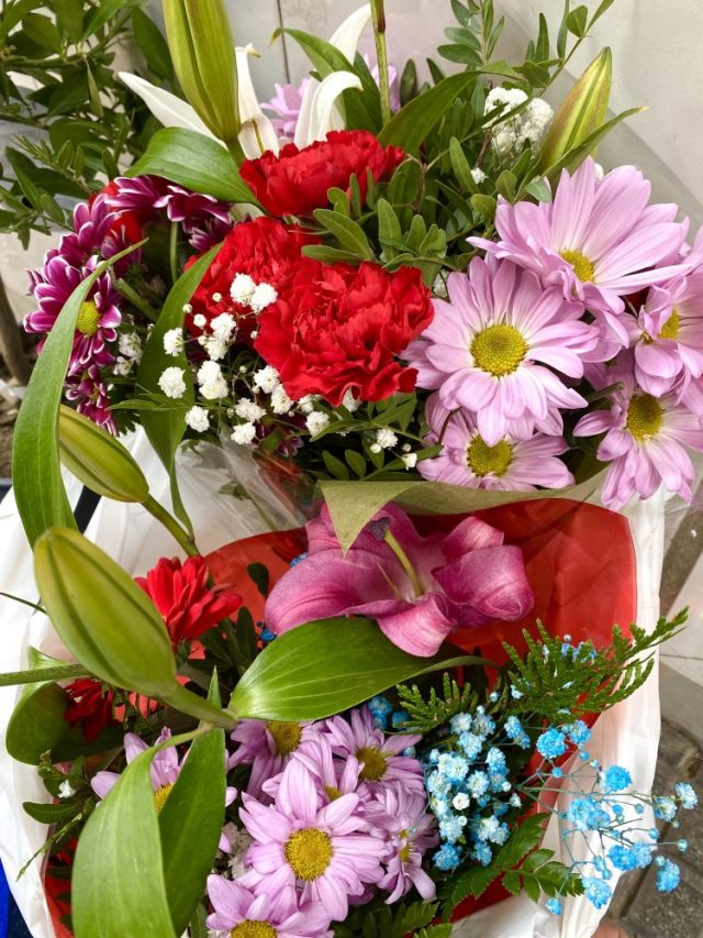 【一日一作プロジェクト】「ざぶぴか(波光)」を作った。久しぶりに「花束」を買った。ものすごい贅沢気分。贈り物なのだけど