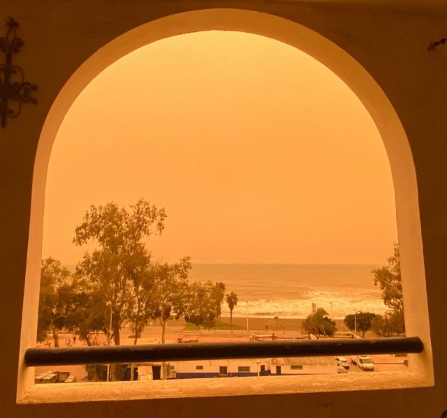【一日一作プロジェクト】「水脈燃(みおもえ)」を作った。今日はマラガを再び、サハラ砂漠の「砂塵」が襲った。見る見る間に、視界が黄色くなっていく。それが