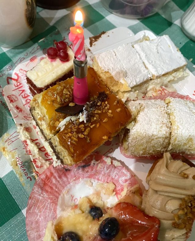 ロウソクの火を吹き消しながら、お隣さん方の笑顔に囲まれ生活できる幸せに感謝。頼りになるお隣のみなさん、ムーチャス・グラシアス!