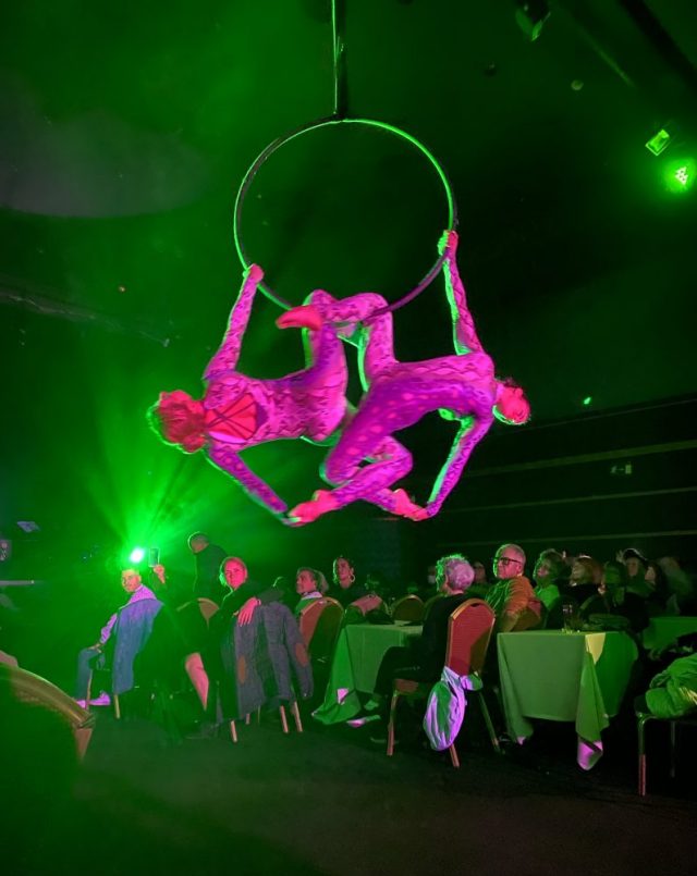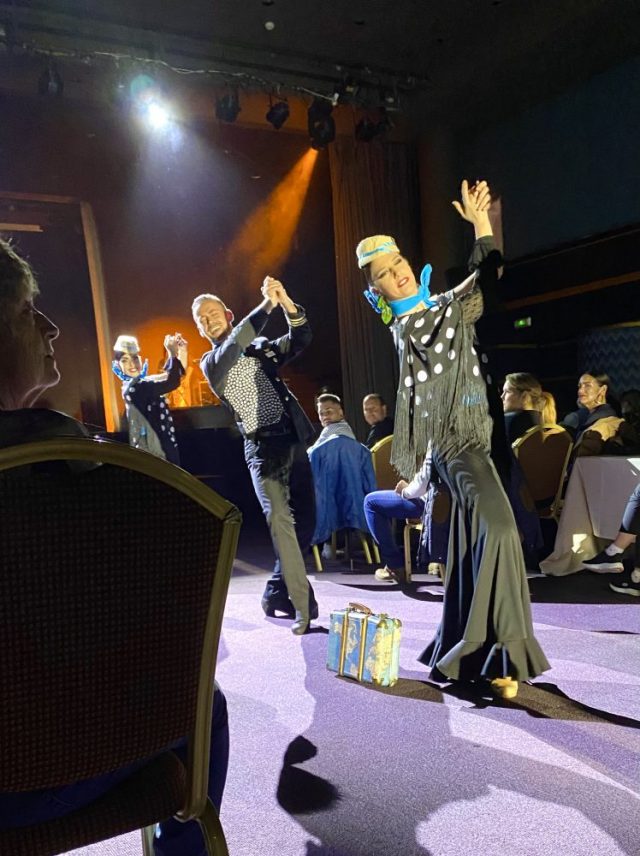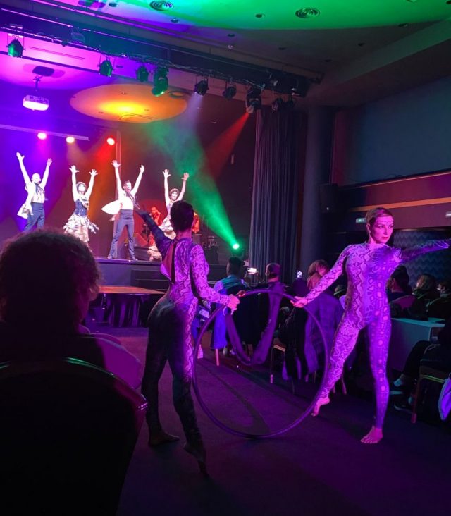 シャンパングラスを片手に会場へ。夜8時半、プレセンターがジョークを飛ばしながら、ショーがスタート。客席の間を通って、次々とダンサー達が現れる。