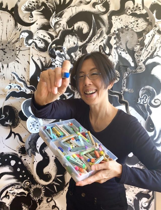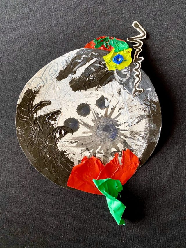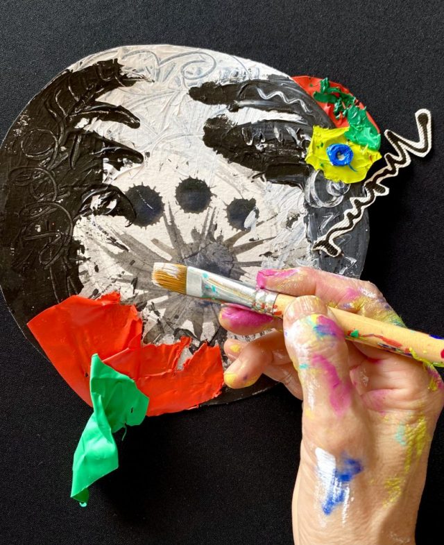 黒白でペイント。「なんかアクセントがほしいなぁ」と、辺りを見回したら「乾いた絵の具のハシキレ」を発見!(笑)いきなり白羽の矢。