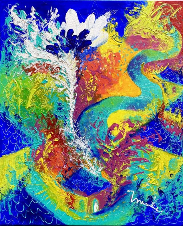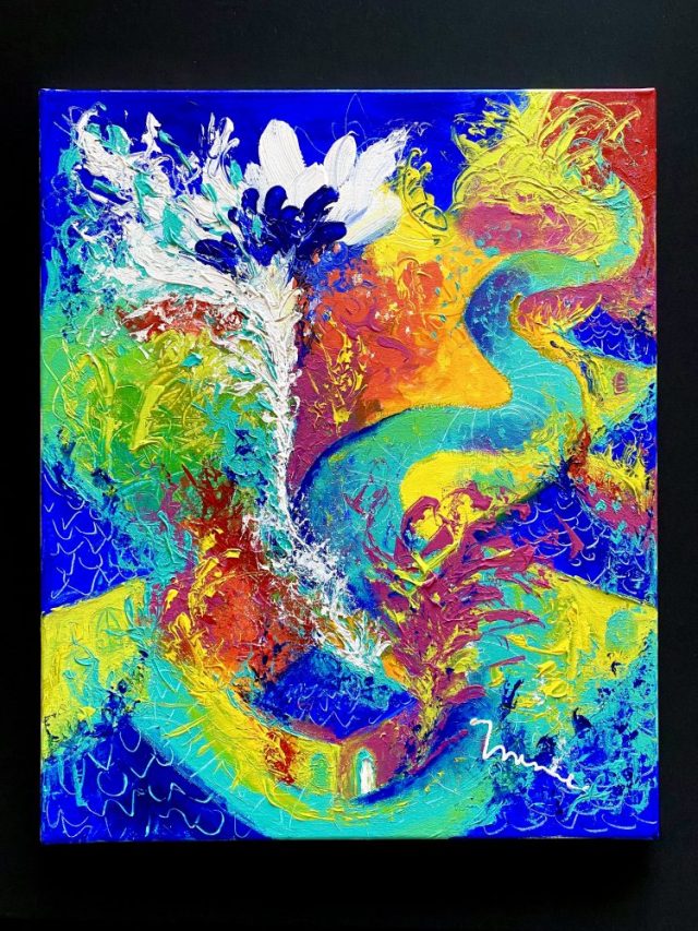 【一日一作プロジェクト】「花燃(はなもえ)」を作った。久しぶりに、木枠付きのキャンバスにペイントしたら