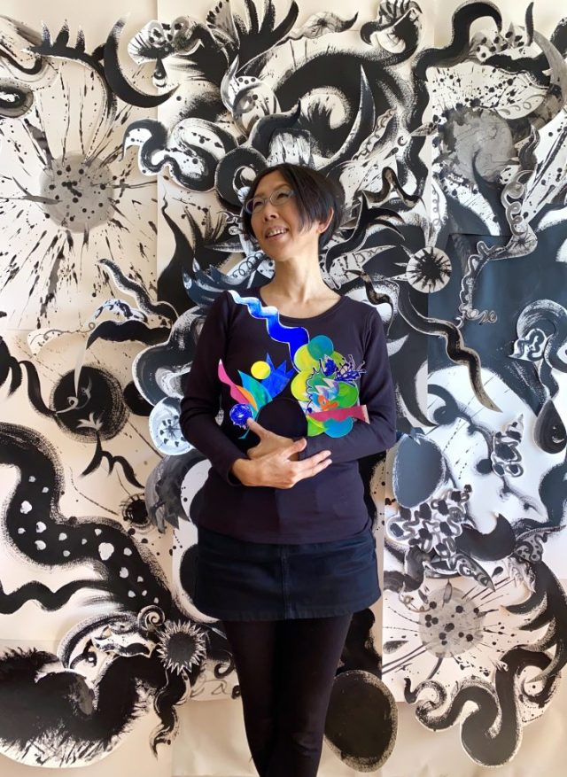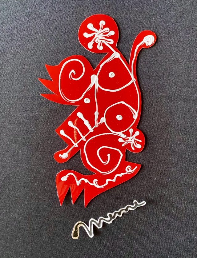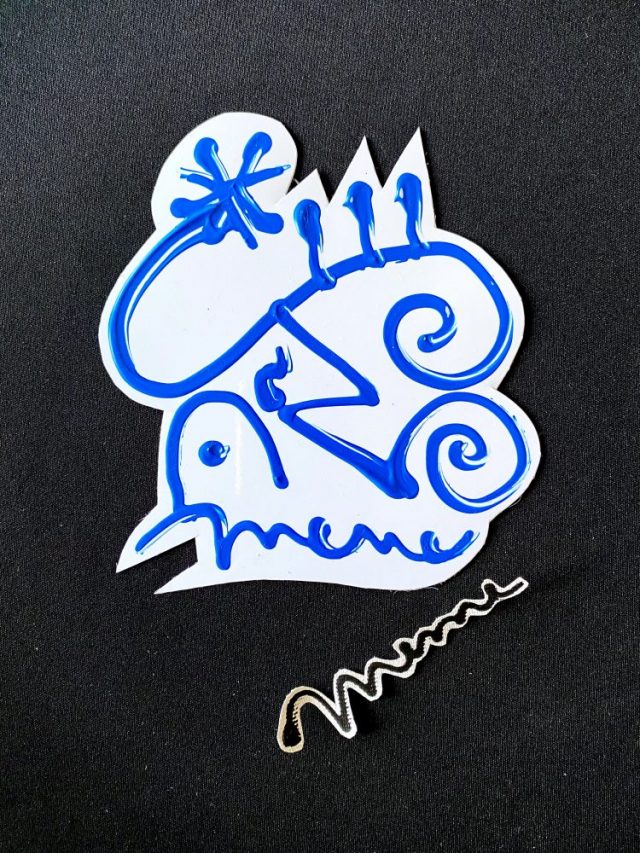 白青の方を、よく見ると生き物「すえにょん」が隠れている〜(笑)。SUEÑO(夢)からの造語。マグネットアート。