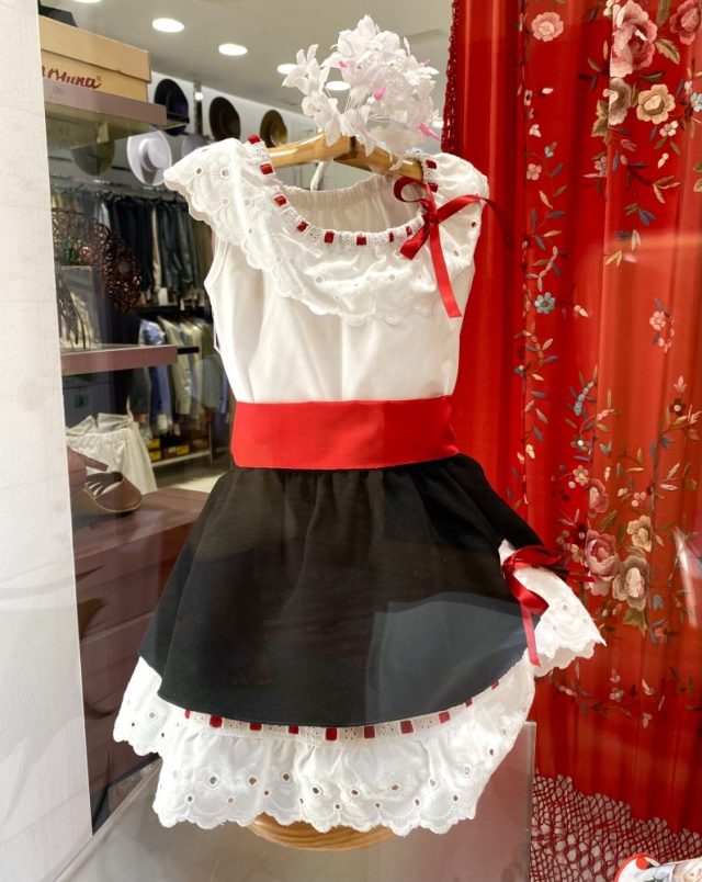 さて。「マラゲーニャ」とは、マラガの民族音楽&舞踏。黒・白・赤が基調の、かわいらしい衣装で踊る(写真)。とはいえ、私は何も持っていないので