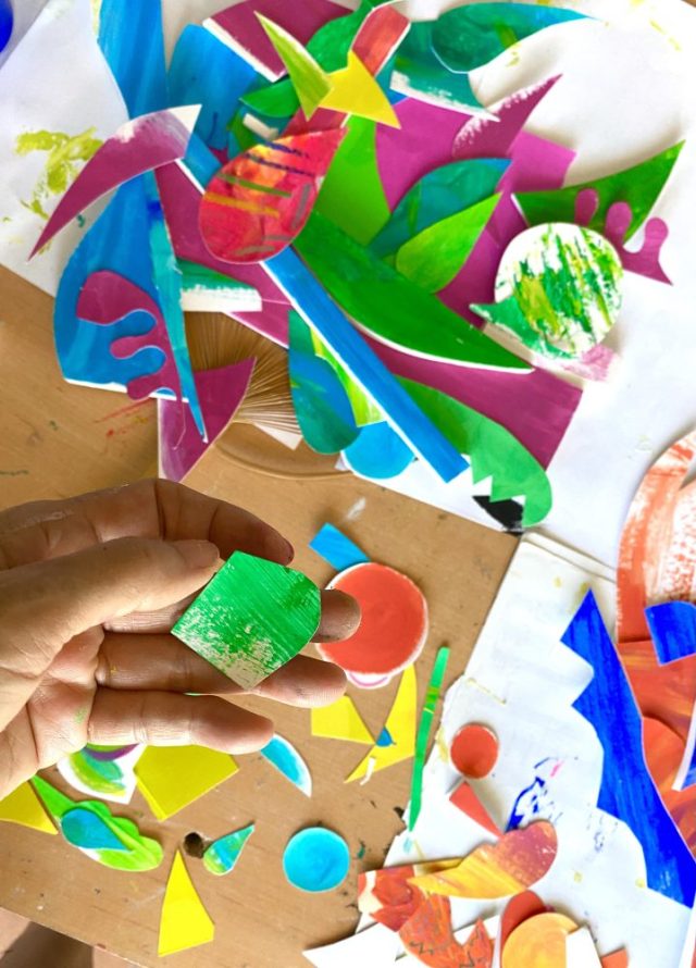 思いついた時が、やる時。この紙切れ、何かを作った時の「残り」なんだけど、今ある色や形、そのまま生かして楽しみたい。どこまでやれるかやってみよう〜。