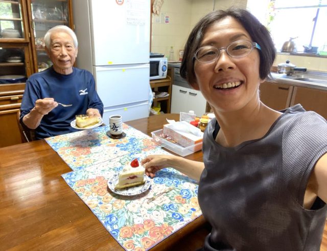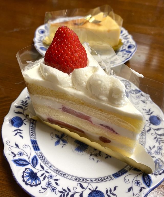 「ケーキでお茶にしよう」「チーズケーキとイチゴの生クリーム、半分こね」