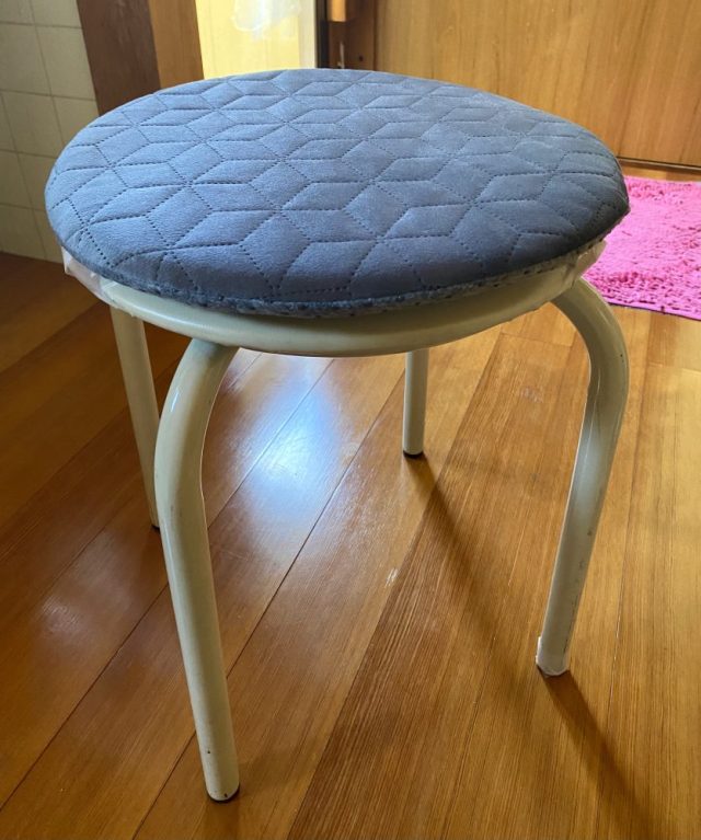 ご褒美に、ショートケーキも購入。さて。「棚作り」はさくさくっと3時間ほどで終了。爆発していたイス(写真)も、応急処置をほどこす。