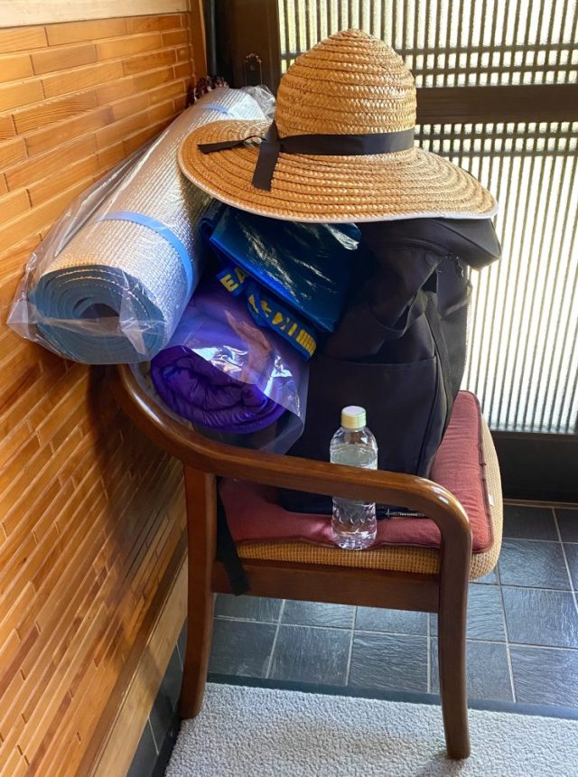 8割のものを変更&追加。寝袋やその下に敷くシートも、くるくる丸めてリュックにセット。逃げやすいように玄関に。