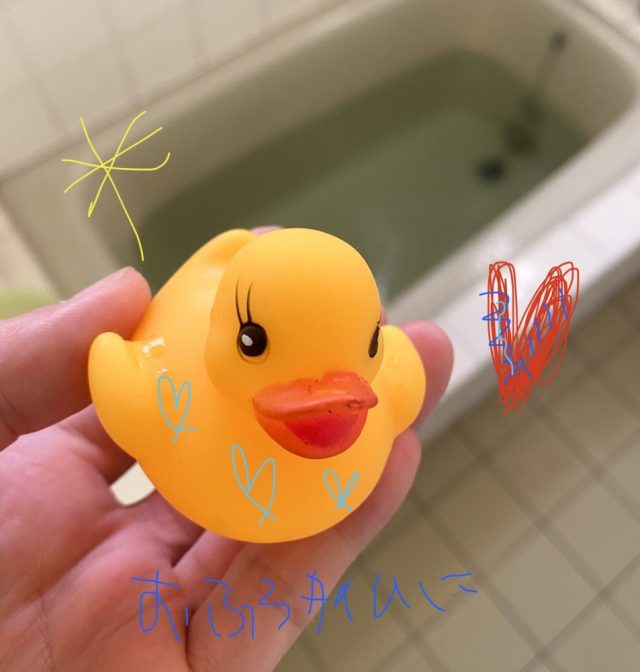 そこかい(笑)。アヒルとお風呂に入るなんて、何十年ぶりだろう〜。風呂場で遊ぶって、めちゃ楽しい〜。どうも最近、夜の9時過ぎには寝てしまう。