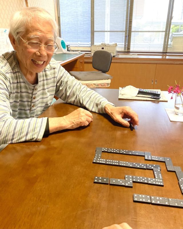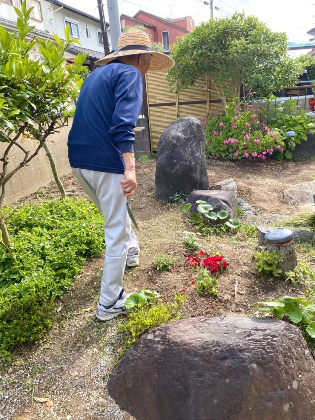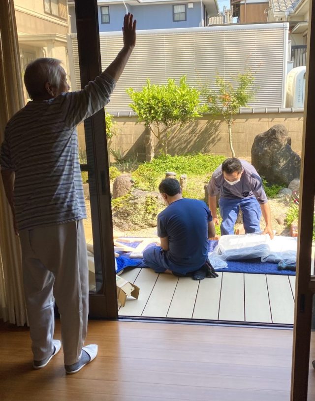 父もびっくり。お兄さん達とわいわい賑やかに作業していると、お隣さんからお声がかかる。それに応えて手を振る父(写真)。とにかく