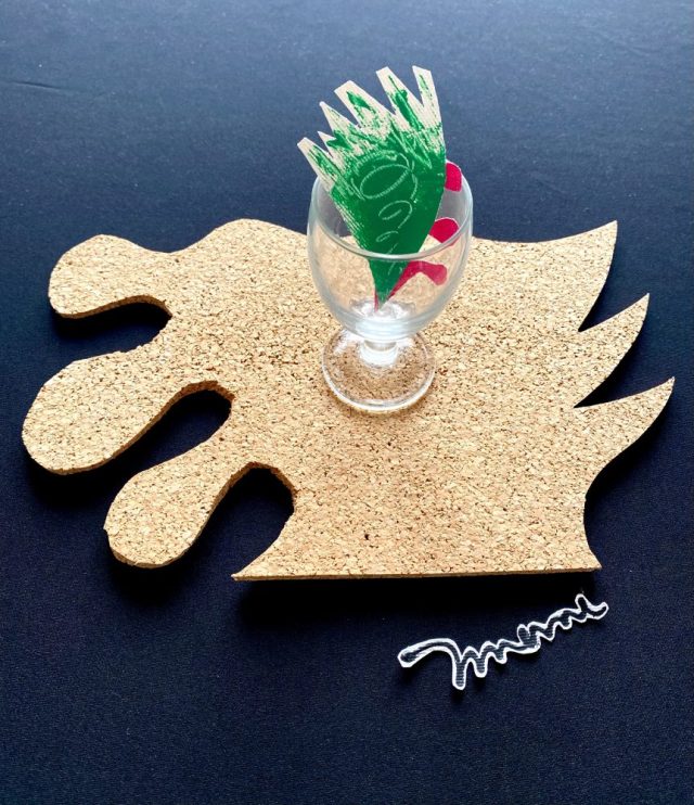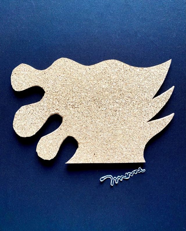★作品紹介「マルモンテ」。海(向かって左側)と山(右側)がひとつに。「マル(海)」+「モンテ(山)」の造語。コルクアート。