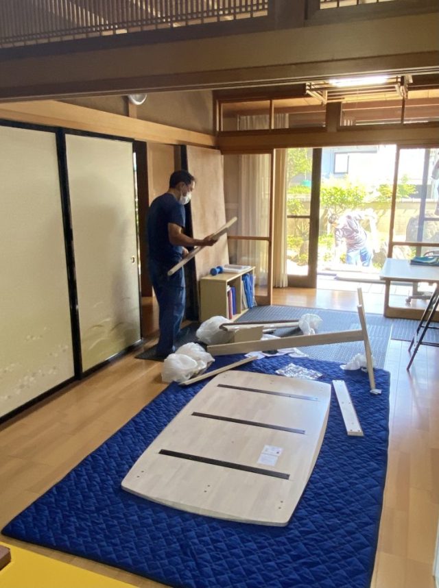 1時間弱の組み立て作業。お兄さん2人は、額から汗を滴らせながら、爽やかな笑顔を見せてくれた。冷蔵庫から、冷えたボトルを取り出し