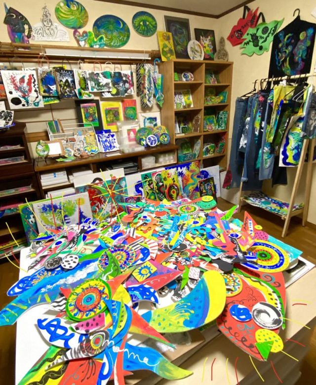 笑。自分の作品だけど。部屋のスペースに対して、作品の量が100倍くらい。バランスめちゃくちゃ。つくづく思うが、空きスペースって大切だ。これでは作品が呼吸できない(←私も)。