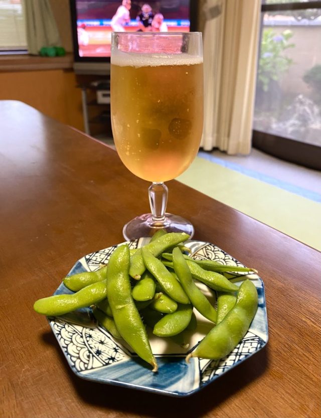 アジサイの花は、出発の知らせ。父との別れが近づいている。だからこそ。ビール片手に枝豆で家飲み。夜は再びビンゴゲーム。今日を全力で楽しむぞ〜。