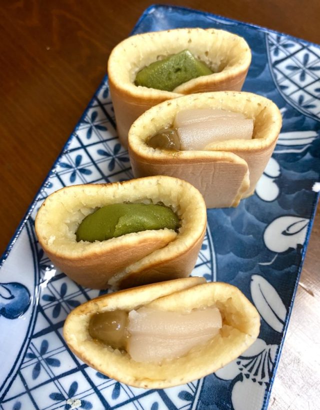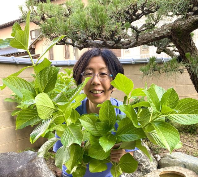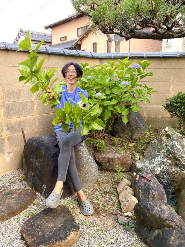 おやつは知多の大あんまき。中の餡は抹茶とほうじ茶(期間限定)。家に帰ると、そそくさと庭へ。すっかりガーデン信仰。大石に腰を下ろしながら