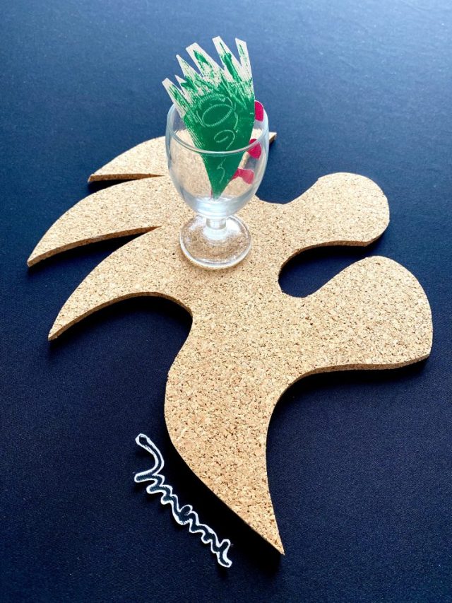 ★作品紹介「はねっぱこ」。「葉っぱ」と「根っこ」がひとつになった。コルクアート。