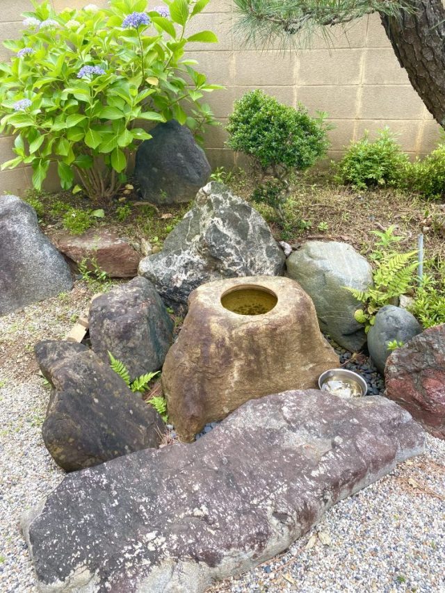 勝手に想像をふくらませる(笑)。この元つくばい、雨水がたまったまま、もう数年も放置されている。何かできそう〜。