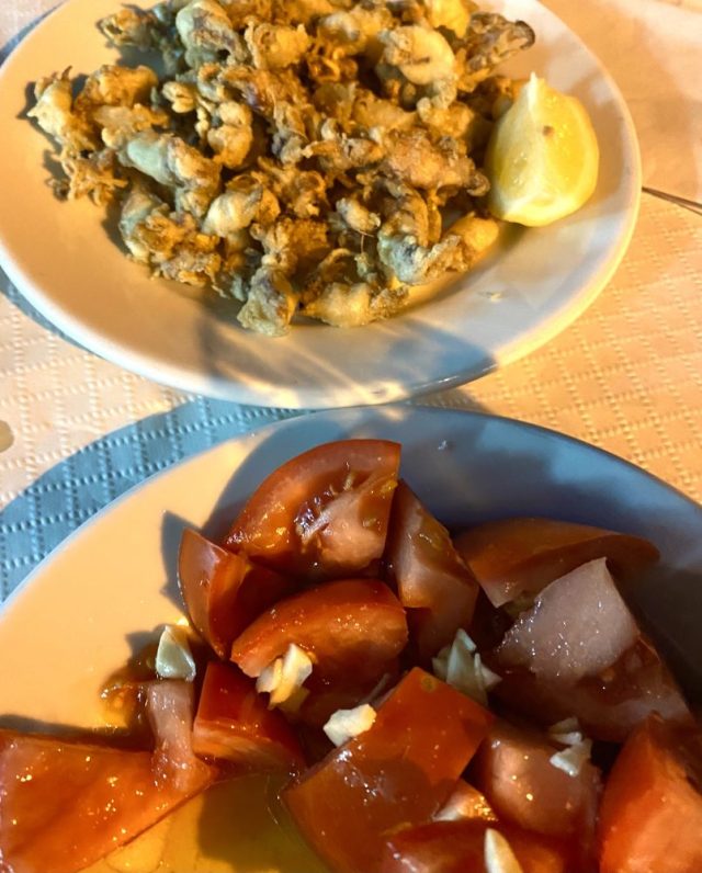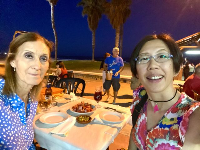 マラガと言ったら、これ(笑)。日が落ちると、するするっと気温が下がり、涼しい風が吹き始める。これ全て、地中海のおかげ。魚介類&トマトサラダを楽しんでいると