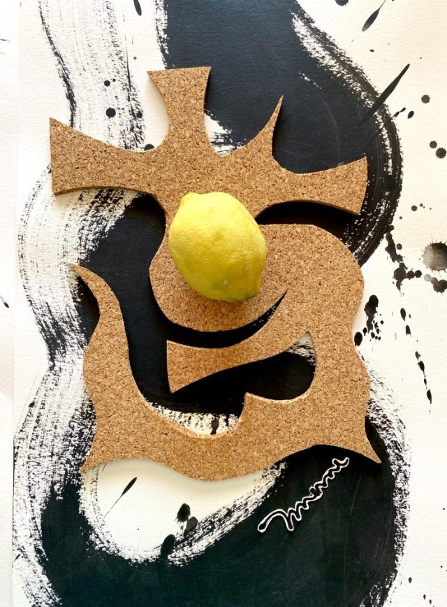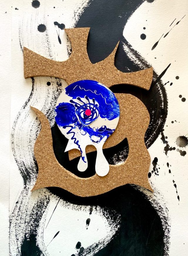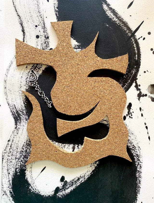 「夢」文字をイメージしながらカット。コルクの上に置くものによって表情が変わる。誘いの手。さらに「あまり布」の整理もスタート。めちゃ色とりどり〜。
