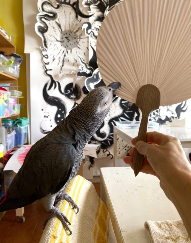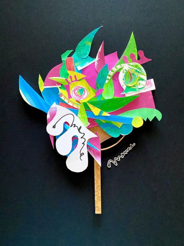 【一日一作プロジェクト】「草霊(くさだま)」を作った。今日から始まる「うちわアート」シリーズ。実は日本のお土産として、うちわを30枚ほどいただき