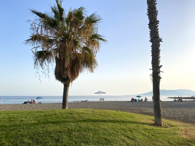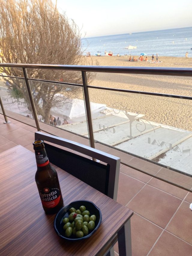さて。夕方から、うちの前のビーチカフェへ。冷たいビール&オリーブの実で、1人乾杯。夕暮れの光が、辺りを優しく包み込む。