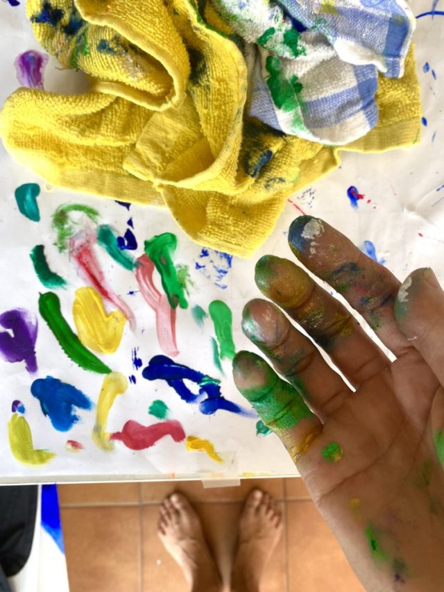爪の中にまで入り込む絵の具。全て「水」のおかげ。シャワーも水浴びも手洗いも。マラガはもう3ヶ月、雨が降っていない。このままいけば「断水」か。