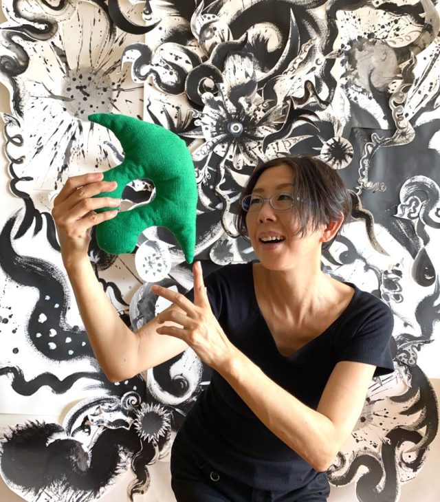 ももアートによく登場する「聖獣」を、縫い縫いしてもらった。描いたラインがちゃんと出るかなぁ?と思っていたら、ぷっくりしてかわいい〜。ぬいぐるみみたい。立体アートは楽しいな。