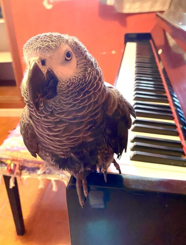 そう。弾いていたのはオウム。鍵盤の上を歩いて、音を出す(笑)。さっそく動画を撮ったった〜(ピアノを横断して、ご満悦の動画はFacebookでご覧いただけます)。