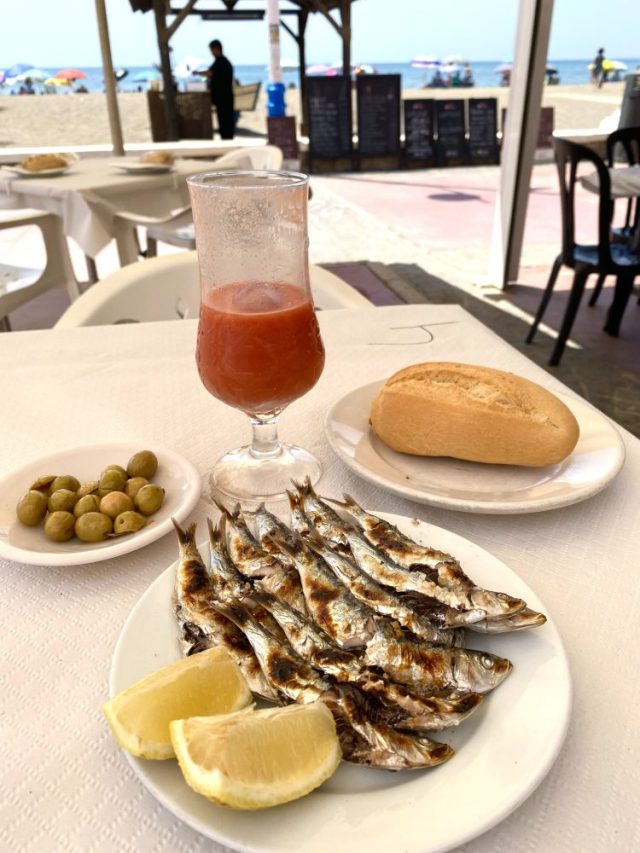 ひたすらイワシだけ(笑)。熱々の炭火焼き。塩とレモンだけでもおいしい〜。さっぱりしたガスパチョ(生野菜ジュース)と相性ぴったり。