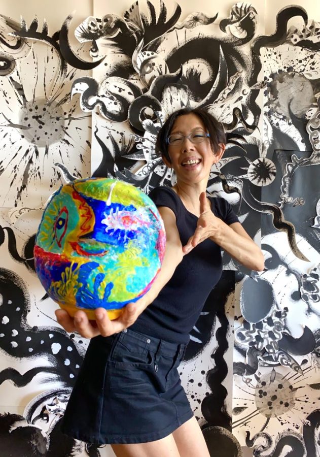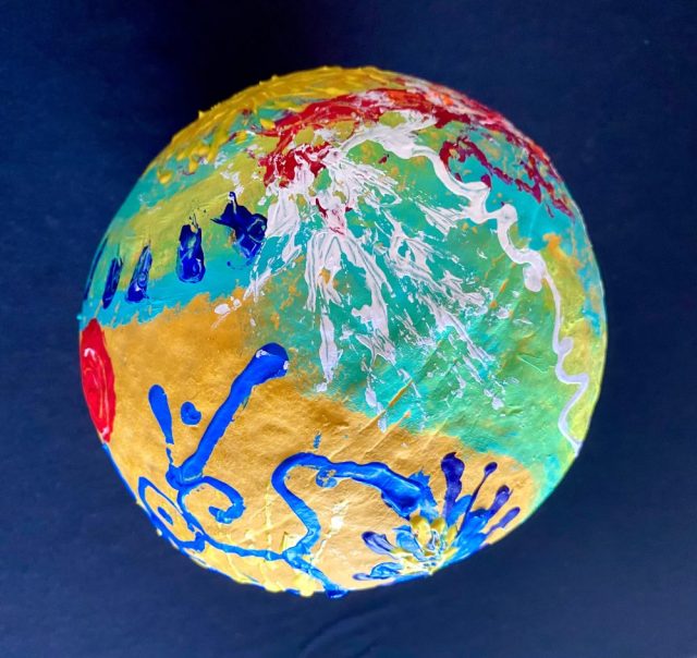 ダルマアート。どこから眺めるかで、まるで違う表情を見せるのがおもしろい。地球をイメージしてペイント。水、大地、火、光、空気、植物、花、実・・・