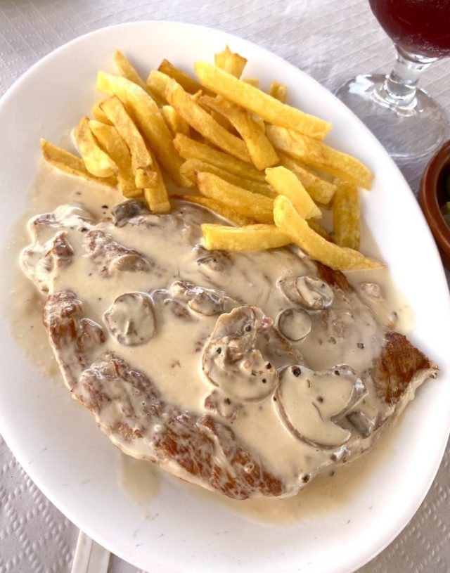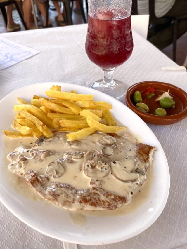 魚介類レストランだけど、肉料理もちゃんとあるのだ(笑)。手のひらより大きな豚肉。厚さ2センチ近く。食べきれるのか〜。