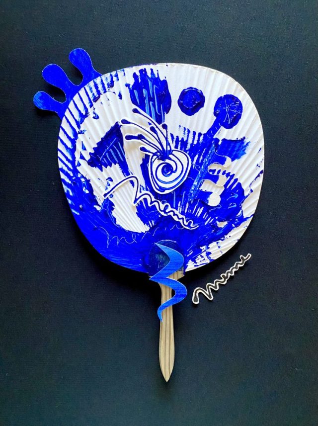 【一日一作プロジェクト】うちわアート「夢波(ゆめなみ)しぶき」を作った。朝から書類や手続きで駆けずり回り、8700歩。なぜか突然、狂おしいほどに肉が食べたくなり